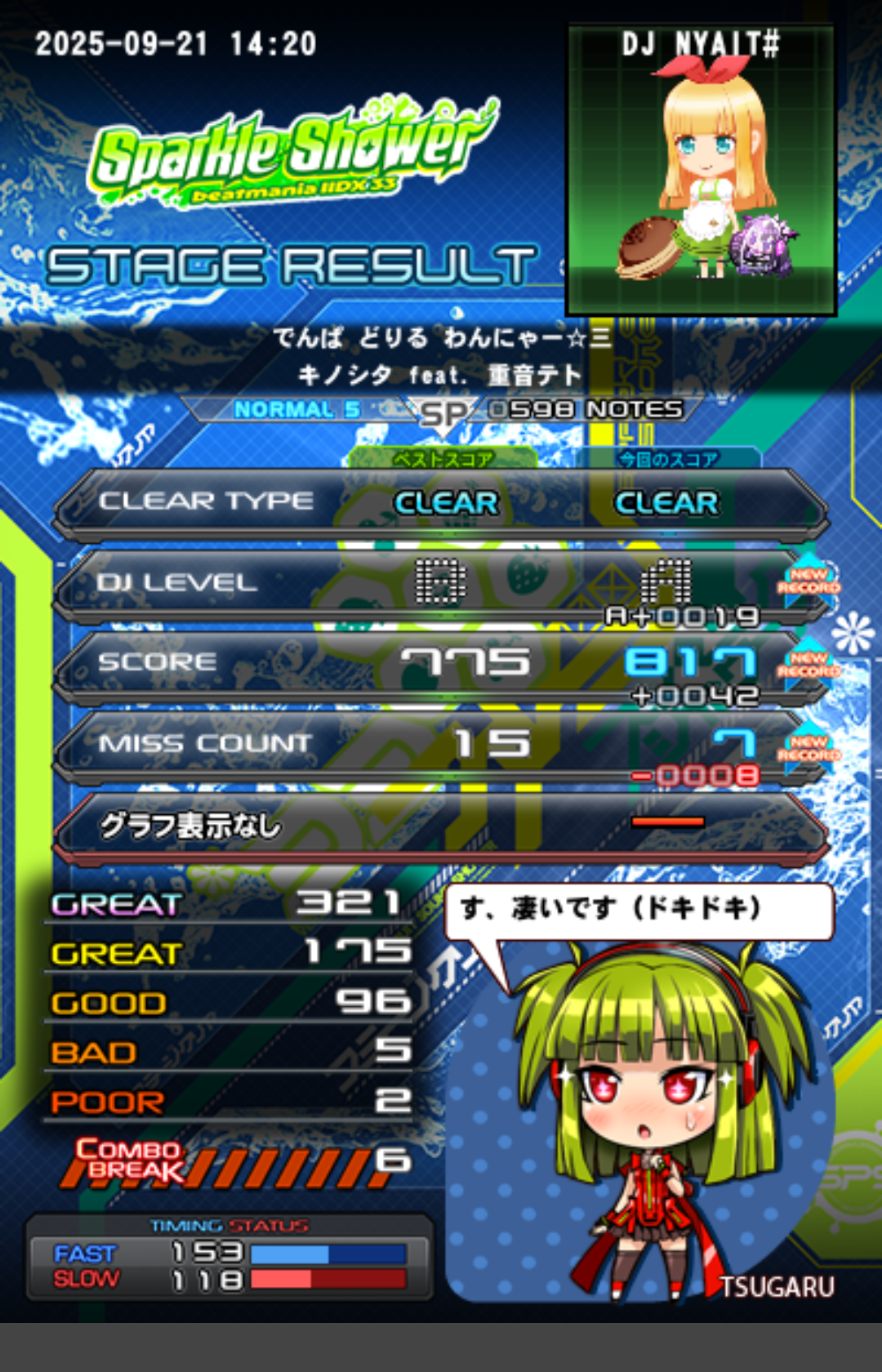何時もの曲も良い感じに更新して…あれ?☆6行ける?っぽい?何か見えるし手が動くぞ??にゃんで?