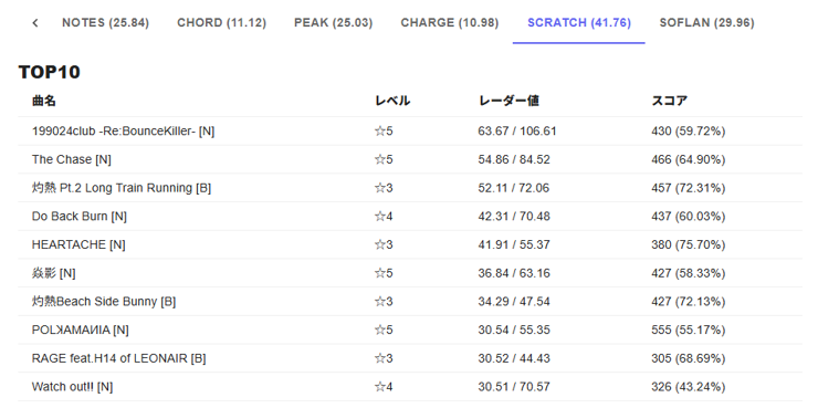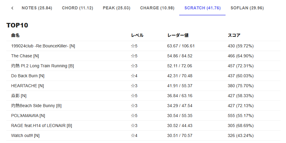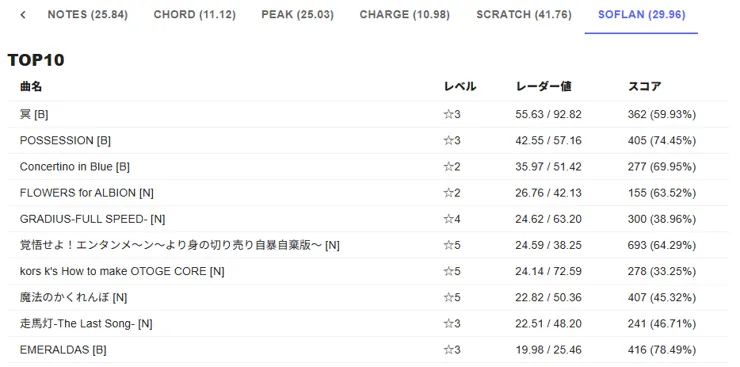 続いてINFINITAS Score Viewer こっちはバージョンを跨いだノーツレーダーが分かる