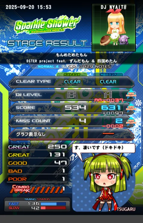 今作は本格復帰して滅茶苦茶実力が伸びて☆5に手が届くようになって色んな曲が出来るようになってモチベが上がりまくりでした