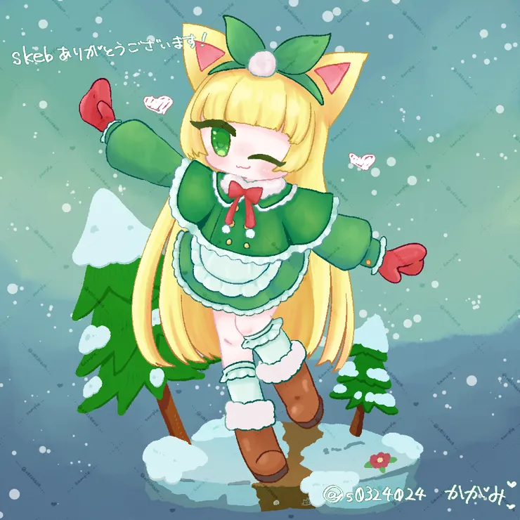 にゃいとはざーどさん(@Nyaight_Hazard@misskey.io)のはざーど1号ちゃんを描かせていただきました!!冬のふわもこコーデです!!